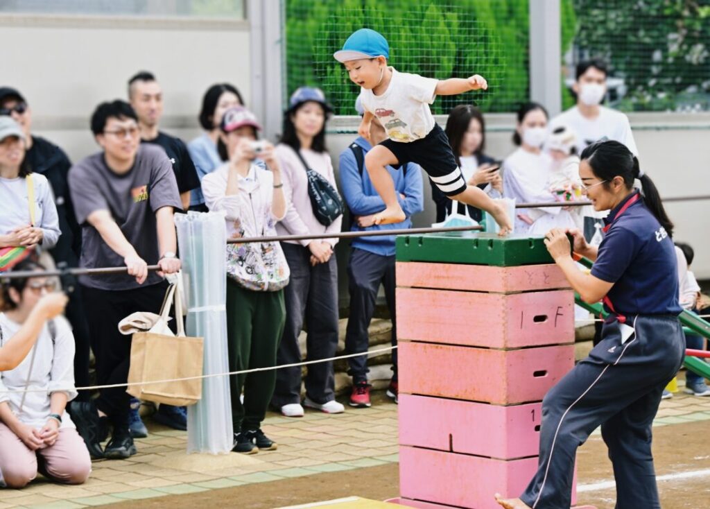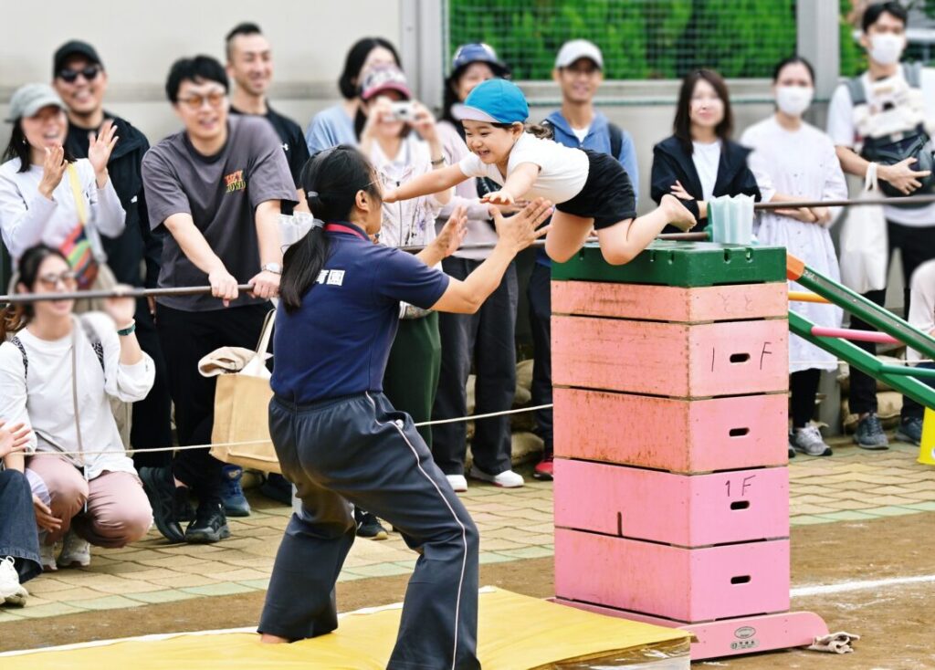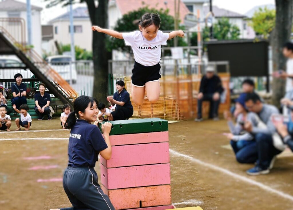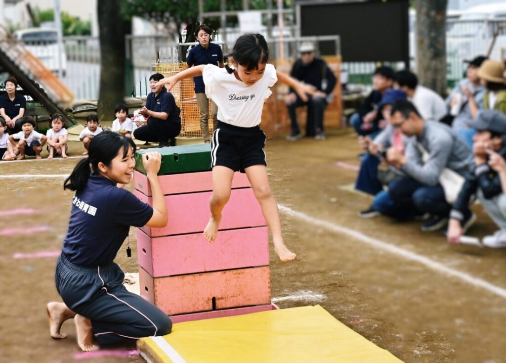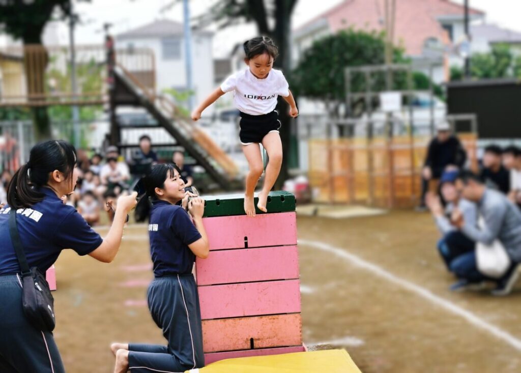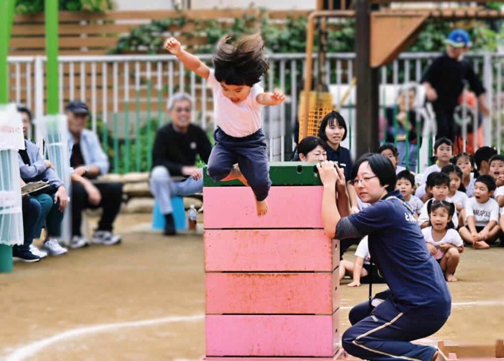巧技台からのジャンプ。自分の身長より高いところから、飛び降ります!