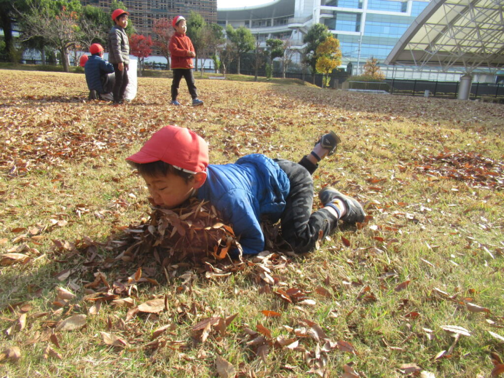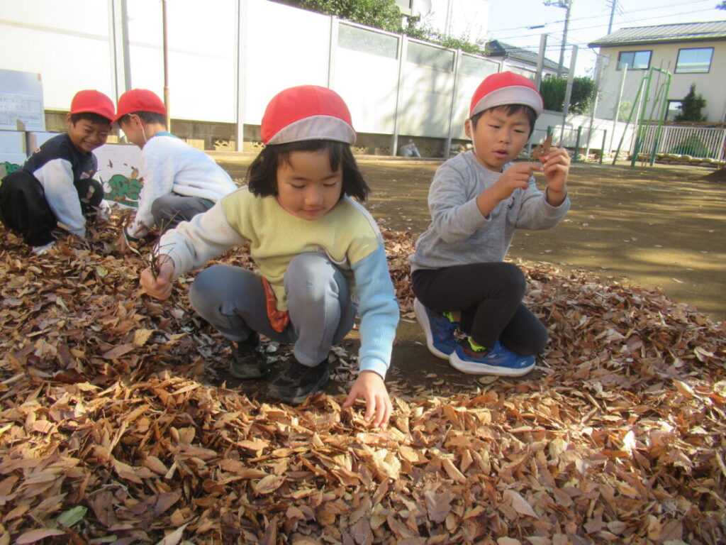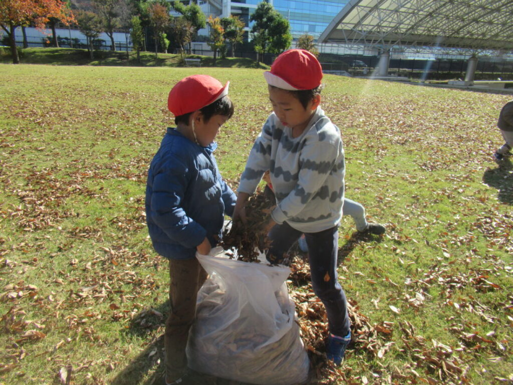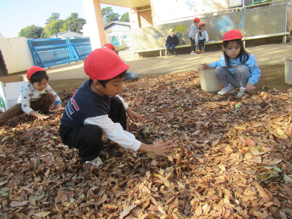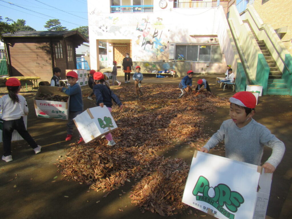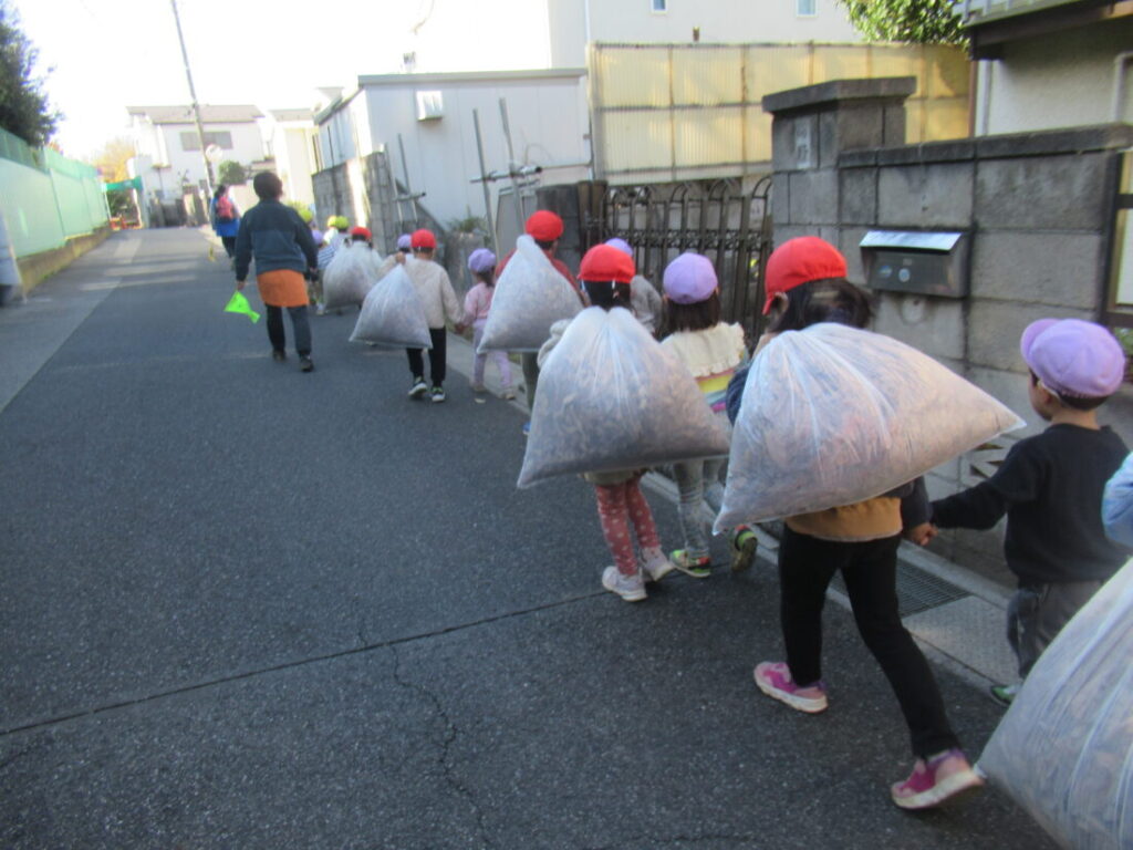 ブログ Blog ホーム | ブログ | 落ち葉プール2025-準備編 大きいすみれ組 公開日:2026.01.05 落ち葉プール2025-準備編 毎年恒例の落ち葉プールづくりです。 公園で落ち葉を集めて、運ぶところから始まります。 3週間かけて、写真のように落ち葉を運びます。 これ、見た目以上に大変なんです。 自分たちで遊びを作るためにみんな、一生懸命。 晴れた日に園庭で広げて、乾燥させます。 枝やごみを取り除きます。 前の記事へ 一覧へ戻る
