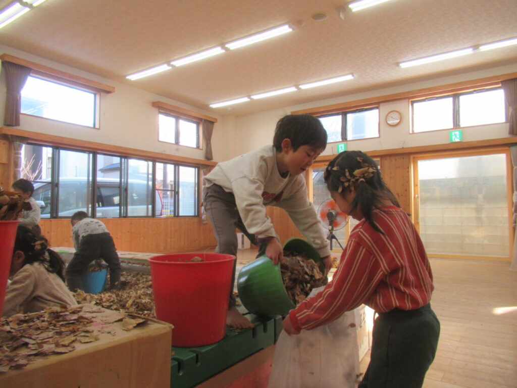 ブログ Blog ホーム | ブログ | 落ち葉プール2025 片づけ 大きいすみれ組 公開日:2026.01.05 落ち葉プール2025 片づけ 名残惜しいけど、落ち葉プールは終わりです。 片づけもみんなで力を合わせて。 次はこの落ち葉で焼き芋をします。 「自分のことは自分で」、乳児期からこの方針で園生活をしてきた子ども達。 大まかに言えば、この落ち葉プールは「みんなで数週間掛けて遊びを準備する」、「みんなでのびのび、楽しむ」、「みんなで片付ける」。と、そんな活動です。その中には色々な非認知能力の要素が含まれています。 前の記事へ 一覧へ戻る 次の記事へ